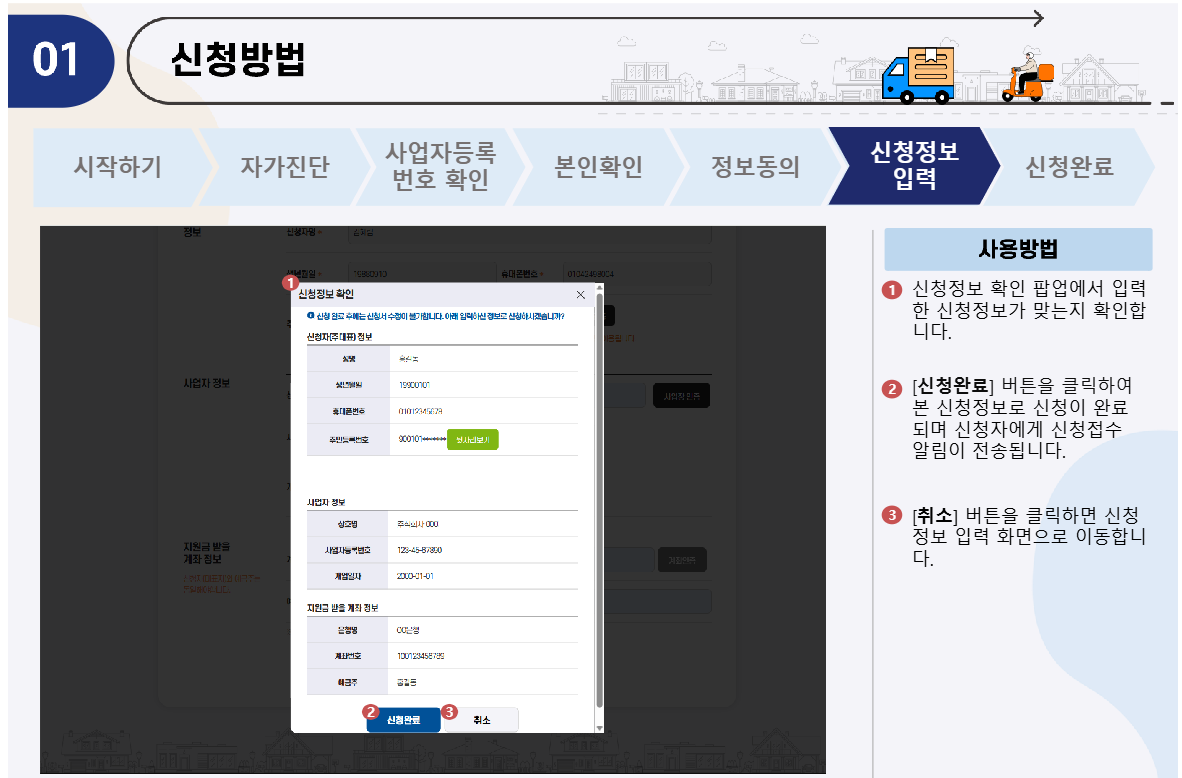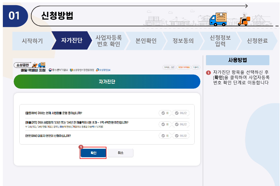 - 신청 마감일 내에 서류 접수 및 택배 송장 내역 제출 가능한 소상공인