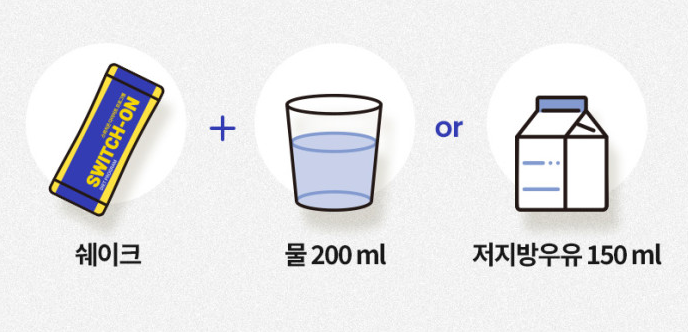 스위치온 쉐이크 + 물 200~250ml (or 무가당 두유) - 점심 (일반식)
