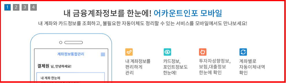 A. 어카운트인포 앱 또는 거래 은행의 모바일 앱에서 가능합니다.