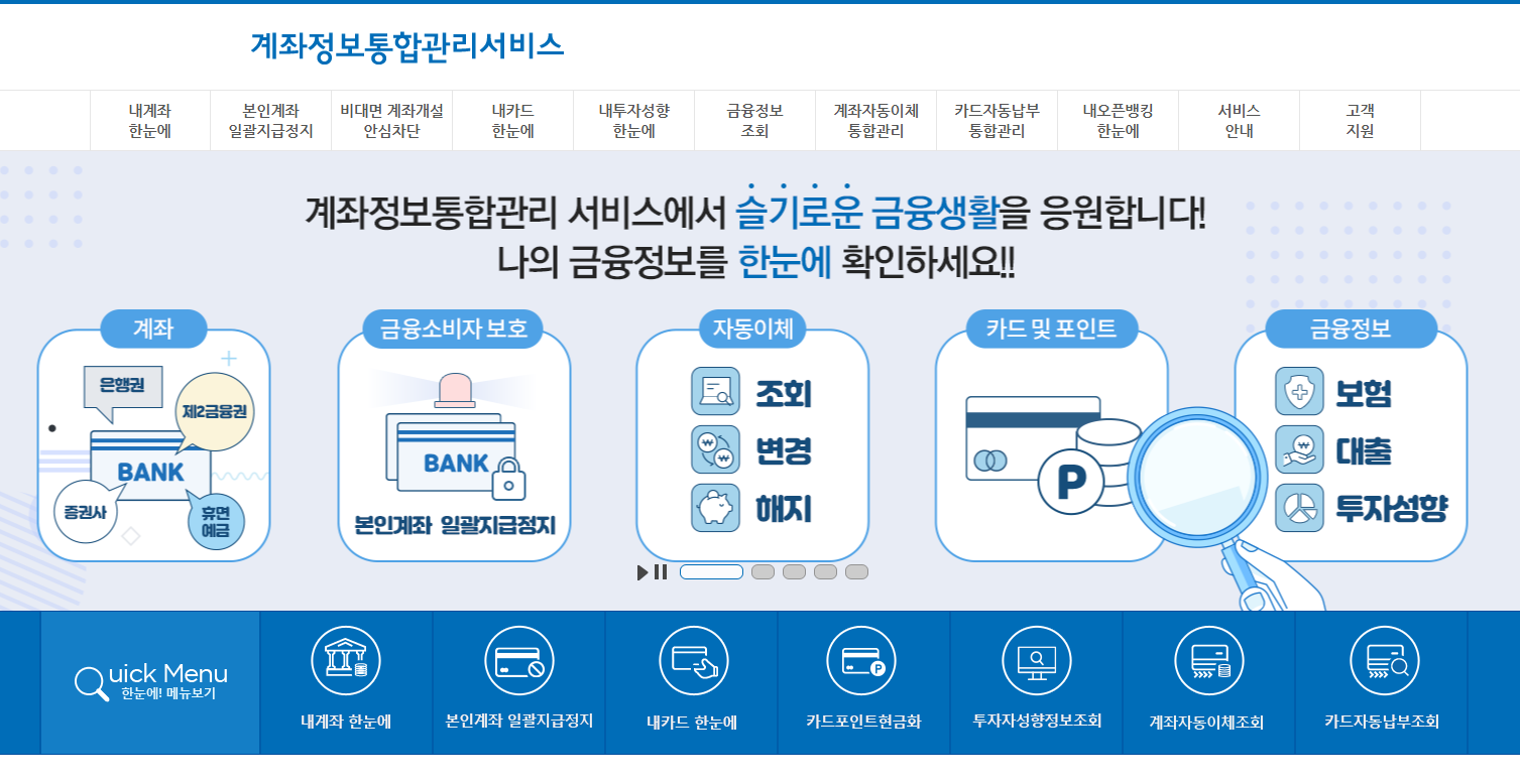 - 금융결제원의 어카운트인포 앱 또는 홈페이지