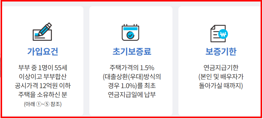 주택연금 수령액 계산 전에 가장 먼저 확인해야 할 것은 가입 조건입니다. 아래 조건을 모두 충족해야 주택연금 신청이 가능합니다.