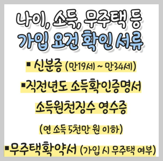 - 자격 요건 확인: 연령(만 19세~34세), 소득(연소득 5천만 원 이하), 무주택 여부 등을 확인합니다.